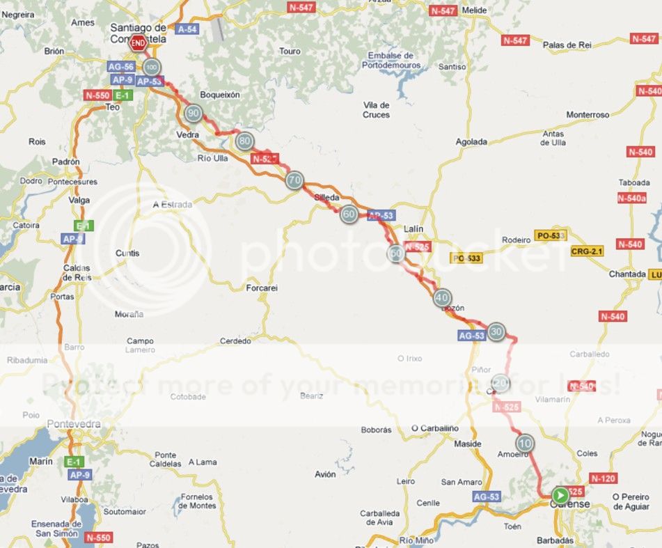 A ruta xa comeza con unha "costiña" que non daba rematado, pero xa despois de Cea, foi subir sen parar, e despois de Oseira inda peor. Os camiños estaban moi rotos e corrian rios de auga por mor das chuvias, a pesar diso, estaba todo o camiño precioso. Choveu moito, vento en contra, frio e neboa, ...
