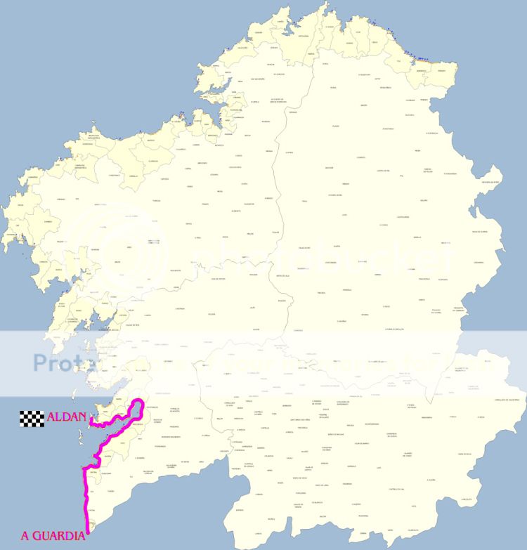 A etapa deste primeiro dia transcorre entre A GUARDA e ALDAN. Un percorrido, que foi de 125 km, no que o terreo non tivo desniveis moi dificultosos e unha morea do camiño foi desenrolado por asfalto.